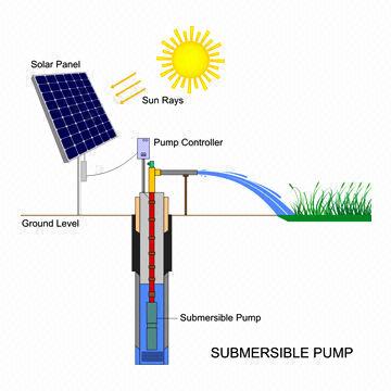 A solar powered pump is a pump running on the power of the sun. It makes efficient use of solar energy and converts it into electrical energy for pumping water to great heights. A solar powered pump can be very environmentally friendly and economical in its operation. This system operates on power generated using solar PV (photovoltaic) system. The photovoltaic array converts the solar energy into electricity, which is used for running the motor pump set. The pumping system draws water from the open well, bore well, pond etc. The water pumping system can be used to irrigate land, when the water is to be pumped from a depth of well or a pond. The solar water systems can be designed based on the requirement of high water volume or low water volume pumping.