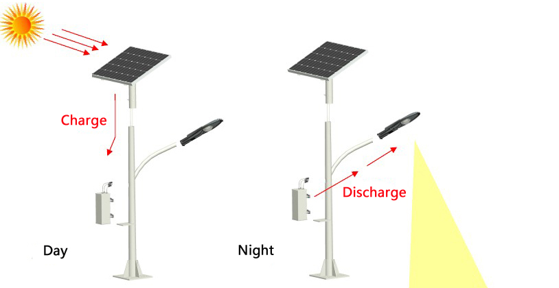 The intelligent controller senses when there is no longer any energy from the sun and automatically turns the LED light on using a portion of the stored energy in the rechargeable battery.